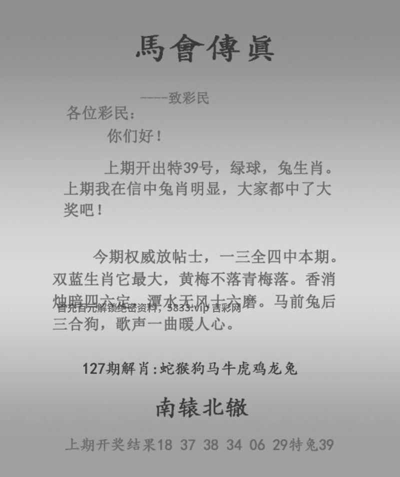 128期马会传真: 更新中 更新中 特围生肖:更新中 |